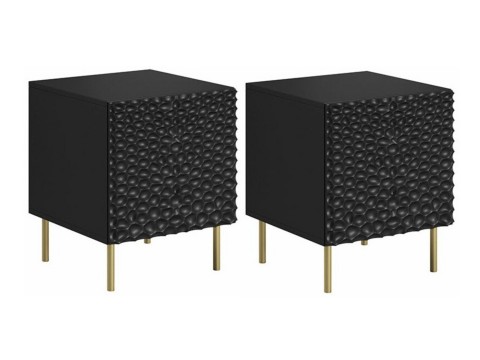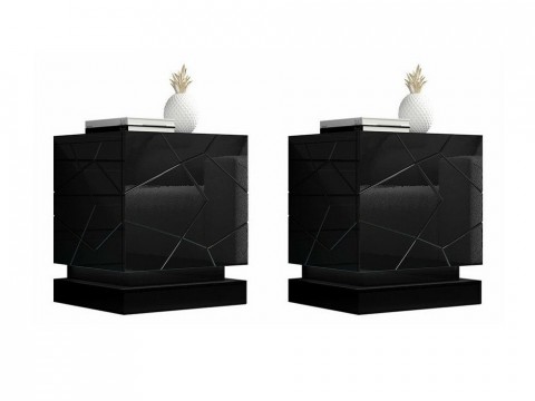 Éjjeliszekrény szett Charlotte 187 (Fekete Fényes fekete)