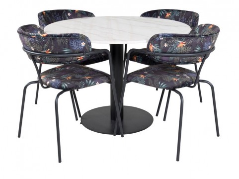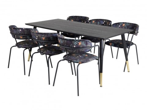 Étkezőgarnitúra Dallas 340 (Virágos minta Fekete)