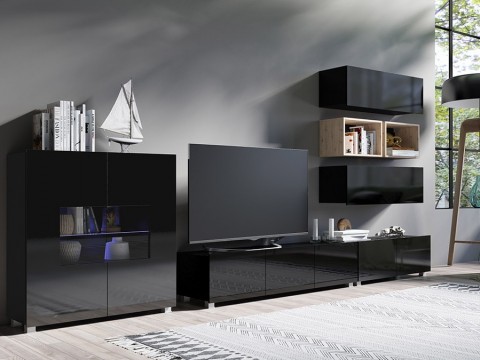 Nappali szett Providence B146 (Fekete Fényes fekete Artisan tölgy)
