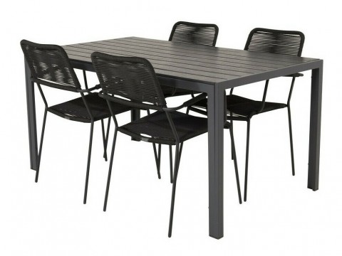 Asztal méret: 740 x 900 x 1500 || Szék méretek: 850 x 550 x 660 || Ülésmagasság: 470 mm || Az ülés szélessége: 444 mm || Üléspárna mélység: 400 mm || A kartámasz magassága: 680 mm || Maximális súly kapacitás személyenként: 150 kg || Asztallap anyaga: Polyfa || Párnázat: Nem || Asztal színe: Fekete || Szék színe: Fekete || Szék színe: Szürke || Kombináció: Nem változtatható || Anyagok: Kötél || Kiegészítő anyag: Fém || Anyagtípus: Acél || Anyagtípus: Alumínium