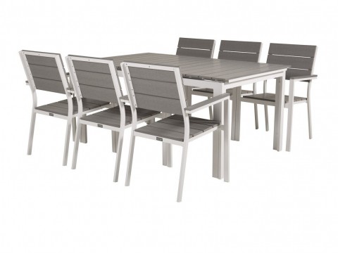 Asztal méret: 745 x 1000 x 1600 / 2400 || Szék méretek: 890 x 570 x 590 || Ülésmagasság: 430 mm || Az ülés szélessége: 410 mm || Üléspárna mélység: 455 mm || A kartámasz magassága: 630 mm || Háttámla magassága: 427 mm || Maximális súly kapacitás személyenként: 110 kg || Hosszabbíthatóság: Igen || Asztallap anyaga: Polyfa || Párnázat: Nem || Asztal színe: Fekete || Asztal színe: Szürke || Szék színe: Fekete || Kombináció: Nem változtatható || Anyagok: Fém || Kiegészítő anyag: Polyfa || Anyagtípus: Alumínium