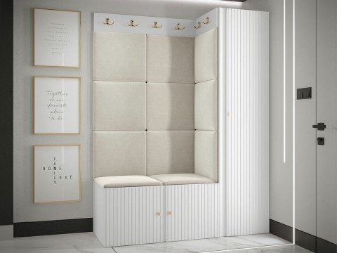 Magasság: 1860 mm || Szélesség: 1240 mm || Mélység: 460 mm || A szekrény méretei: 1860 x 400 x 460 || Cipődoboz méretei: 420 x 840 x 440 || Akasztó méretei: 160 x 840 x 46 ; 160 x 460 x 46 || Anyag vastagsága: 16 mm || Lábak: Műanyag || Lábmagasság: 20 mm || Lágy falpanelek száma: 11 db. || Tükör: Nem || Fogantyúk: Fém || Univerzális összeszerelés: Igen || Szín: Világosbarna || Szín: Fekete || Kombináció: Nem változtatható || Anyagok: Közepes sűrűségű farostlemez || Anyagok: Laminált forgácslap || Anyagok: Kárpit || Ellenállóság: 58000 Martindale - ciklus || Anyagtípus: Plüss