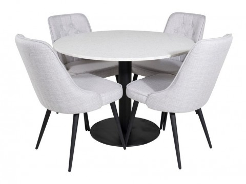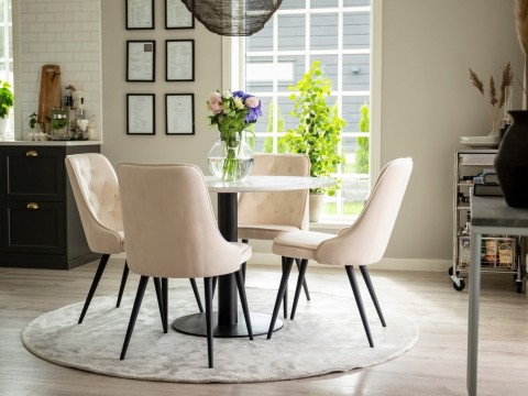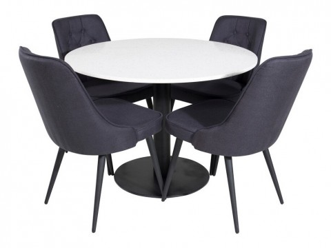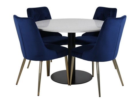 Magasság: 740 mm || Átmérő: 1060 mm || Szék méretek: 885 x 500 x 660 || A pult vastagsága: 18 mm || Ülésmagasság: 490 mm || Az ülés szélessége: 500 mm || Üléspárna mélység: 490 mm || Háttámla magassága: 470 mm || Maximális súly kapacitás személyenként: 150 kg || Székek száma: 4 || Hosszabbíthatóság: Nem || Asztallap anyaga: Márvány || Váz anyaga: Fém || Ülés: Kárpit || Széklábak: Fémes || Asztal színe: Fekete || Asztal színe: Fehér || Asztal színe: Terazzo || Szék színe: Fekete || Szék színe: Sárgaréz || Kombináció: Nem változtatható || Anyagtípus: Bársony