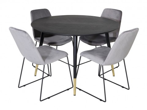 Magasság: 755 mm || Átmérő: 1150 mm || Szék méretek: 840 x 460 x 630 || Ülésmagasság: 470 mm || Az ülés szélessége: 460 mm || Üléspárna mélység: 400 mm || Háttámla magassága: 440 mm || Maximális teherbírás: 30 kg || Maximális súly kapacitás személyenként: 130 kg || Székek száma: 4 || Hosszabbíthatóság: Nem || Asztallap anyaga: Közepes sűrűségű farostlemez || Váz anyaga: Fém || Ülés: Kárpit || Széktest: Természetes fa furnér || Széklábak: Fémes || Asztal színe: Fekete || Asztal színe: Aranysárga || Szék színe: Fekete || Szék színe: Kék || Kombináció: Nem változtatható || Anyagtípus: Bársony