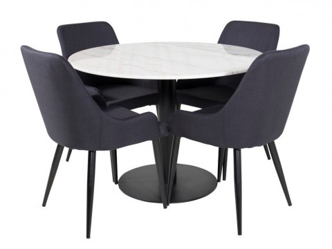 Magasság: 750 mm || Átmérő: 1060 mm || Szék méretek: 860 x 490 x 580 || Ülésmagasság: 470 mm || Az ülés szélessége: 460 mm || Üléspárna mélység: 450 mm || Háttámla magassága: 440 mm || Maximális teherbírás: 70 kg || Maximális súly kapacitás személyenként: 110 kg || Székek száma: 4 || Hosszabbíthatóság: Nem || Asztallap anyaga: Márvány || Váz anyaga: Fém || Ülés: Kárpit || Széktest: Természetes fa furnér || Széklábak: Fémes || Asztal színe: Fekete || Asztal színe: Fehér márvány || Szék színe: Fekete || Szék színe: Kék || Kombináció: Nem változtatható || Anyagtípus: Poliészter