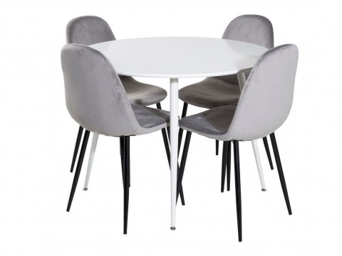 Magasság: 750 mm || Átmérő: 1000 mm || Szék méretek: 880 x 424 x 530 || A pult vastagsága: 16 mm || Ülésmagasság: 415 mm || Az ülés szélessége: 415 mm || Üléspárna mélység: 390 mm || Lábak magassága: 735 mm || A munkalap maximális teherbírása: 30 kg || Maximális súly kapacitás személyenként: 110 kg || Székek száma: 4 || Hosszabbíthatóság: Nem || Asztallap anyaga: Közepes sűrűségű farostlemez || Váz anyaga: Fém || Ülés: Kárpit || Széktest: Természetes fa furnér || Széklábak: Fémes || Asztal színe: Fehér || Szék színe: Krém || Szék színe: Fekete || Kombináció: Nem változtatható || Anyagtípus: Bársony || Anyagtípus: Acél