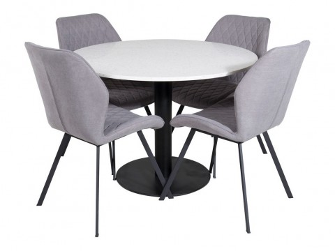 Magasság: 740 mm || Átmérő: 1080 mm || Szék méretek: 900 x 500 x 630 || A pult vastagsága: 18 mm || Ülésmagasság: 530 mm || Az ülés szélessége: 380 mm || Üléspárna mélység: 430 mm || Ülés vastagsága: 37 mm || Háttámla magassága: 450 mm || Háttámla vastagsága: 37 mm || A munkalap maximális teherbírása: 70 kg || Maximális súly kapacitás személyenként: 110 kg || Székek száma: 4 || Hosszabbíthatóság: Nem || Asztallap anyaga: Márvány || Váz anyaga: Fém || Ülés: Kárpit || Széktest: Laminált forgácslap || Széktest: Fa || Széklábak: Fémes || Asztal színe: Fekete || Asztal színe: Fehér || Szék színe: Fekete || Kombináció: Nem változtatható || Anyagtípus: Bársony