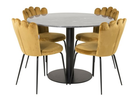 Magasság: 750 mm || Átmérő: 1060 mm || Szék méretek: 825 x 445 x 540 || Ülésmagasság: 480 mm || Az ülés szélessége: 430 mm || Üléspárna mélység: 415 mm || Ülés vastagsága: 50 mm || Súly: 108 kg || Maximális súly kapacitás személyenként: 100 kg || Székek száma: 4 || Hosszabbíthatóság: Nem || Asztallap anyaga: Márvány || Váz anyaga: Fém || Ülés: Kárpit || Széklábak: Fémes || Asztal színe: Fekete márvány || Asztal színe: Fekete || Szék színe: Fekete || Kombináció: Nem változtatható || Anyagtípus: Bársony