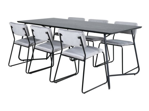 Magasság: 750 mm || Szélesség: 900 mm || Hosszúság: 1900 mm || Szék méretek: 760 x 400 x 520 || A pult vastagsága: 25 mm || Ülésmagasság: 485 mm || Az ülés szélessége: 400 mm || Üléspárna mélység: 420 mm || Ülés vastagsága: 60 mm || Székek száma: 6 || Hosszabbíthatóság: Nem || Asztallap anyaga: Közepes sűrűségű farostlemez || Asztallap anyaga: Természetes fa furnér || Váz anyaga: Fém || Ülés: Kárpit || Széklábak: Fémes || Asztal színe: Fekete || Asztal színe: Réz || Szék színe: Fekete || Kombináció: Nem változtatható || Anyagtípus: Bársony