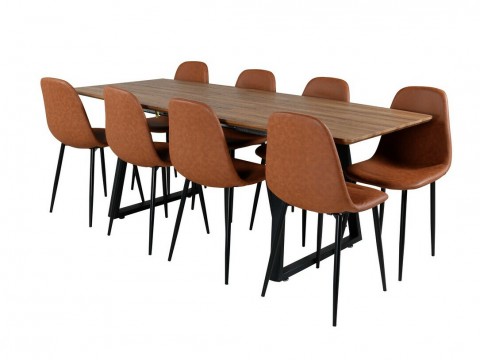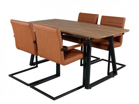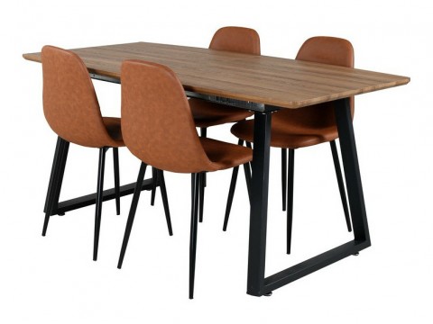 Magasság: 750 mm || Szélesség: 900 mm || Hosszúság: 2000 mm || Szék méretek: 940 x 430 x 490 || A pult vastagsága: 18 mm || Ülésmagasság: 470 mm || Az ülés szélessége: 410 mm || Üléspárna mélység: 370 mm || Ülés vastagsága: 40 mm || Székek száma: 4 || Hosszabbíthatóság: Nem || Asztallap anyaga: Közepes sűrűségű farostlemez || Asztallap anyaga: Természetes fa furnér || Váz anyaga: Természetes fa furnér || Váz anyaga: Közepes sűrűségű farostlemez || Ülés: Kárpit || Széklábak: Fémes || Asztal színe: Világosbarna || Asztal színe: Fekete || Szék színe: Barna || Szék színe: Fekete || Kombináció: Nem változtatható || Anyagtípus: Acél
