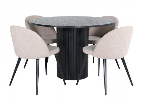 Magasság: 750 mm || Átmérő: 1100 mm || Szék méretek: 765 x 500 x 570 || A pult vastagsága: 18 mm || Ülésmagasság: 465 mm || Az ülés szélessége: 410 mm || Üléspárna mélység: 425 mm || Ülés vastagsága: 55 mm || Háttámla magassága: 465 mm || Székek száma: 4 || Hosszabbíthatóság: Nem || Asztallap anyaga: Edzett üveg || Váz anyaga: Fa || Ülés: Kárpit || Széklábak: Fémes || Asztal színe: Fekete márvány || Asztal színe: Fekete || Szék színe: Szürke || Szék színe: Fekete || Kombináció: Nem változtatható || Anyagtípus: Acél