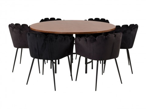 Magasság: 740 mm || Átmérő: 1400 mm || Szék méretek: 765 x 610 x 540 || A pult vastagsága: 1400 mm || Ülésmagasság: 480 mm || Az ülés szélessége: 520 mm || Üléspárna mélység: 420 mm || A kartámasz magassága: 215 mm || Háttámla magassága: 325 mm || Háttámla vastagsága: 60 mm || Székek száma: 6 || Hosszabbíthatóság: Nem || Asztallap anyaga: Közepes sűrűségű farostlemez || Váz anyaga: Fém || Ülés: Kárpit || Széklábak: Fémes || Asztal színe: Fekete || Asztal színe: Barna || Szék színe: Fekete || Szék színe: Sárga || Kombináció: Nem változtatható || Anyagtípus: Bársony