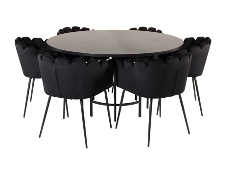 Magasság: 740 mm || Átmérő: 1400 mm || Szék méretek: 765 x 610 x 540 || Ülésmagasság: 480 mm || Az ülés szélessége: 520 mm || Üléspárna mélység: 420 mm || A kartámasz magassága: 620 mm || Háttámla magassága: 325 mm || Háttámla vastagsága: 60 mm || Székek száma: 6 || Hosszabbíthatóság: Nem || Asztallap anyaga: Közepes sűrűségű farostlemez || Váz anyaga: Fém || Ülés: Kárpit || Széklábak: Fémes || Asztal színe: Fekete || Szék színe: Fekete || Szék színe: Sárga || Kombináció: Nem változtatható || Anyagtípus: Bársony