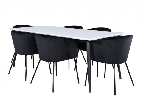 Magasság: 750 mm || Szélesség: 850 mm || Hosszúság: 1600 mm || Maximális hossz: 2000 mm || Szék méretek: 810 x 455 x 580 || Ülésmagasság: 460 mm || Az ülés szélessége: 450 mm || Üléspárna mélység: 390 mm || Háttámla magassága: 350 mm || Háttámla vastagsága: 85 mm || Maximális súly kapacitás személyenként: 110 kg || Székek száma: 4 || Hosszabbíthatóság: Igen || Asztallap anyaga: Közepes sűrűségű farostlemez || Váz anyaga: Fém || Ülés: Műanyag || Széklábak: Fémes || Asztal színe: Fekete || Asztal színe: Tölgy || Szék színe: Fekete || Kombináció: Nem változtatható