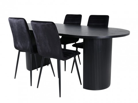 Magasság: 750 mm || Szélesség: 850 mm || Hosszúság: 1600 mm || Maximális hossz: 2000 mm || Szék méretek: 885 x 500 x 660 || Ülésmagasság: 490 mm || Az ülés szélessége: 500 mm || Üléspárna mélység: 490 mm || Háttámla magassága: 470 mm || Háttámla vastagsága: 52 mm || Maximális súly kapacitás személyenként: 110 kg || Székek száma: 4 || Hosszabbíthatóság: Igen || Asztallap anyaga: Közepes sűrűségű farostlemez || Váz anyaga: Fém || Ülés: Kárpit || Széklábak: Fémes || Asztal színe: Fekete || Asztal színe: Tölgy || Szék színe: Fekete || Szék színe: Kék || Kombináció: Nem változtatható