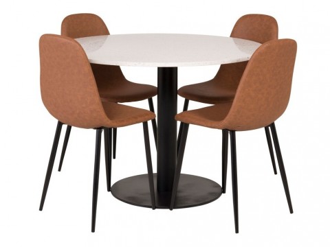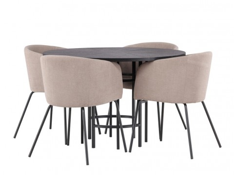 Magasság: 740 mm || Átmérő: 1150 mm || Szék méretek: 780 x 550 x 550 || A pult vastagsága: 25 mm || Ülésmagasság: 490 mm || Üléspárna mélység: 450 mm || Lábak magassága: 715 mm || A munkalap maximális teherbírása: 80 kg || Maximális súly kapacitás személyenként: 120 kg || Székek száma: 4 || Hosszabbíthatóság: Nem || Asztallap anyaga: Közepes sűrűségű farostlemez || Asztallap anyaga: Természetes fa furnér || Váz anyaga: Fém || Ülés: Kárpit || Széktest: Laminált forgácslap || Széklábak: Fémes || Asztal színe: Fekete || Asztal színe: Barna || Szék színe: Fekete || Szék színe: Beige || Kombináció: Nem változtatható || Anyagtípus: Acél || Anyagtípus: Poliészter