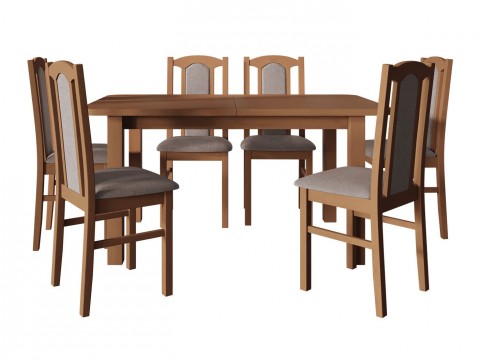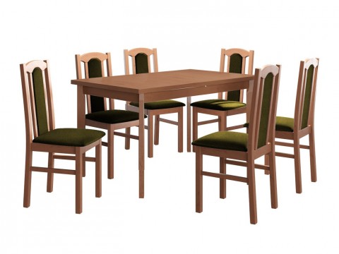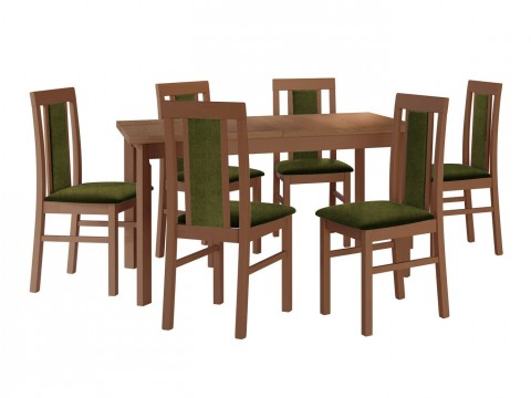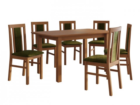 Magasság: 780 mm || Szélesség: 800 mm || Hosszúság: 1400 mm || Maximális hossz: 1800 mm || A pult vastagsága: 32 mm || Székek száma: 6 || Hosszabbíthatóság: Igen || Asztallap anyaga: Laminált forgácslap || Váz anyaga: Fa || Ülés: Kárpit || Széktest: Fa || Széklábak: Fa || Asztal színe: Égerfa || Szék színe: Égerfa || Szék színe: Fekete || Kombináció: Nem változtatható || Kiegészítő anyag: ABS || Fa: Bükkfa