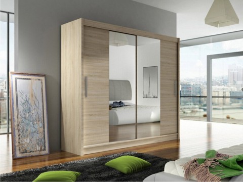 Magasság: 2150 mm || Szélesség: 1800 mm || Mélység: 580 mm || A burkolat vastagsága: 16 mm || Külső lemezvastagság: 16 mm || A felső lemez vastagsága: 16 mm || Lábak: Nem || Polcok száma: 5 db. || Ajtók száma: 2 db. || Súly: 133 kg || Tükör: Igen || Szekrényajtók: Tolóajtók || Fogantyúk: Műanyag || Szín: Sötét tölgy || Anyagok: Laminált forgácslap || Kiegészítő anyag: ABS