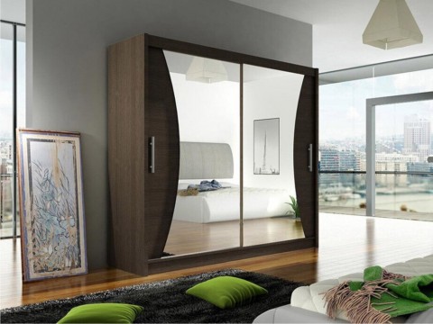 Magasság: 2150 mm || Szélesség: 1800 mm || Mélység: 570 mm || A burkolat vastagsága: 16 mm || Külső lemezvastagság: 16 mm || A felső lemez vastagsága: 16 mm || Lábak: Nem || Polcok száma: 5 db. || Ajtók száma: 2 db. || Súly: 136 kg || Tükör: Igen || Szekrényajtók: Tolóajtók || Fogantyúk: Műanyag || Szín: Fekete || Anyagok: Laminált forgácslap || Kiegészítő anyag: ABS