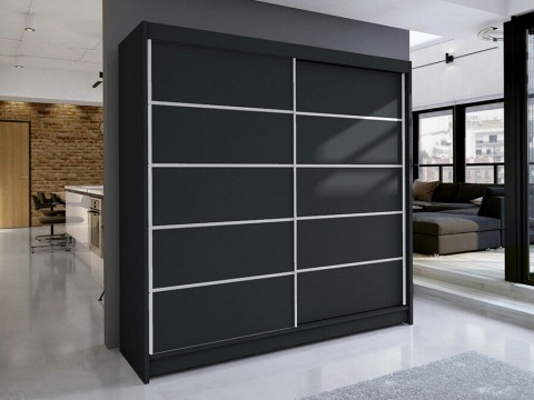 Magasság: 2150 mm || Szélesség: 1800 mm || Mélység: 580 mm || A burkolat vastagsága: 16 mm || Külső lemezvastagság: 16 mm || A felső lemez vastagsága: 16 mm || Lábak: Nem || Polcok száma: 5 db. || Ajtók száma: 2 db. || Súly: 139 kg || Tükör: Nem || Szekrényajtók: Tolóajtók || Fogantyúk: Fém || Szín: Fekete || Szín: Fehér || Anyagok: Laminált forgácslap