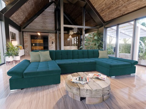 Magasság: 800 mm || Szélesség: 3020 mm || Mélység: 2130 mm || Ülésmagasság: 390 mm || Háttámla magassága: 450 mm || Alvás funkció: Igen || Alvó funkció: Eurobook || A fekvőfelület szélessége: 1400 mm || A fekvőfelület hossza: 2520 mm || Lábak: Műanyag || Lábmagasság: 45 mm || Súly: 147 kg || Ágyneműtartó: Igen || Rugó: Zig Zag típus || Univerzális sarokkanapé: Igen || Anyagok: Kárpit || Ellenállóság: 60000 Martindale - ciklus || Ágytest anyaga: Laminált forgácslap || Ágytest anyaga: Fa || Anyagtípus: Bársony