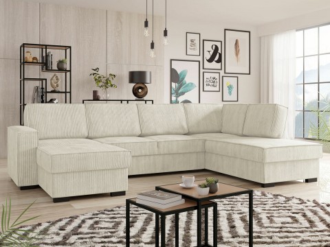 Magasság: 900 mm || Szélesség: 2400 mm || Mélység: 1900 mm || Ágyneműtartó méretei: 150 x 1750 x 670 || Ülésmagasság: 450 mm || A kartámasz magassága: 690 mm || Karfa szélesség: 130 mm || Háttámla magassága: 500 mm || Háttámla vastagsága: 290 mm || Alvás funkció: Igen || Alvó funkció: Dolphin || A fekvőfelület szélessége: 1200 mm || A fekvőfelület hossza: 2150 mm || Lábak: Fém || Lábak: Műanyag || Lábmagasság: 120 mm || Súly: 108 kg || Ágyneműtartó: Igen || Rugó: Zig Zag típus || Univerzális sarokkanapé: Igen || Szín: Fekete || Szín: Krém || Anyagok: Kárpit || Ágytest anyaga: Fa