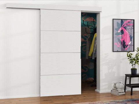 Ajtó magasság: 2050 mm || Ajtó szélesség: 860 mm || A fedőszalag méretei: 95 x 3440 || Tolóajtó rendszer méretei: 3370 || Súly: 46 kg || Tükör: Nem || Tolóajtók jellemzői: Alumínium sínek || Tolóajtók jellemzői: Lehetséges helyrögzítés || Tolóajtók jellemzői: Sokoldalú || Tolóajtók jellemzői: Csendes záró mechanizmus || Fogantyúk: Műanyag || Szín: Fehér || Anyagok: Laminált forgácslap || Kiegészítő anyag: Fém || Anyagtípus: Alumínium