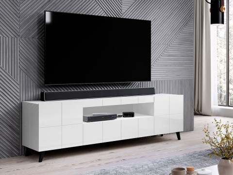Magasság: 530 mm || Maximális magasság: 580 mm || Szélesség: 1840 mm || Mélység: 450 mm || A burkolat vastagsága: 16 mm || Külső lemezvastagság: 16 mm || A felső lemez vastagsága: 16 mm || Lábak: Műanyag || Lábmagasság: 120 mm || Ajtók száma: 2 db. || Fiókok száma: 1 db. || Súly: 62 kg || Asztallap típusa: Fiókos és ajtós || Lyukak vezetékekhez: Nem || Szín: Fényes fekete || Anyagok: Közepes sűrűségű farostlemez || Kiegészítő anyag: Laminált forgácslap || Kiegészítő információ: A készlet két fajta lábat tartalmaz