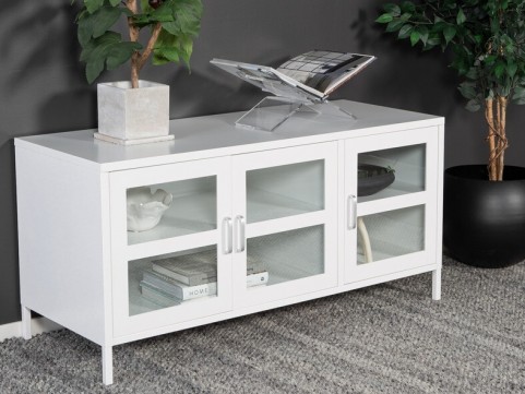 Magasság: 400 mm || Szélesség: 1800 mm || Mélység: 400 mm || Lábak: Fém || Lábmagasság: 100 mm || Súly: 41 kg || Felső lemez maximális teherbírása: 30 kg || Asztallap típusa: Ajtókkal || Lyukak vezetékekhez: Igen || Szín: Fehér || Anyagok: Közepes sűrűségű farostlemez